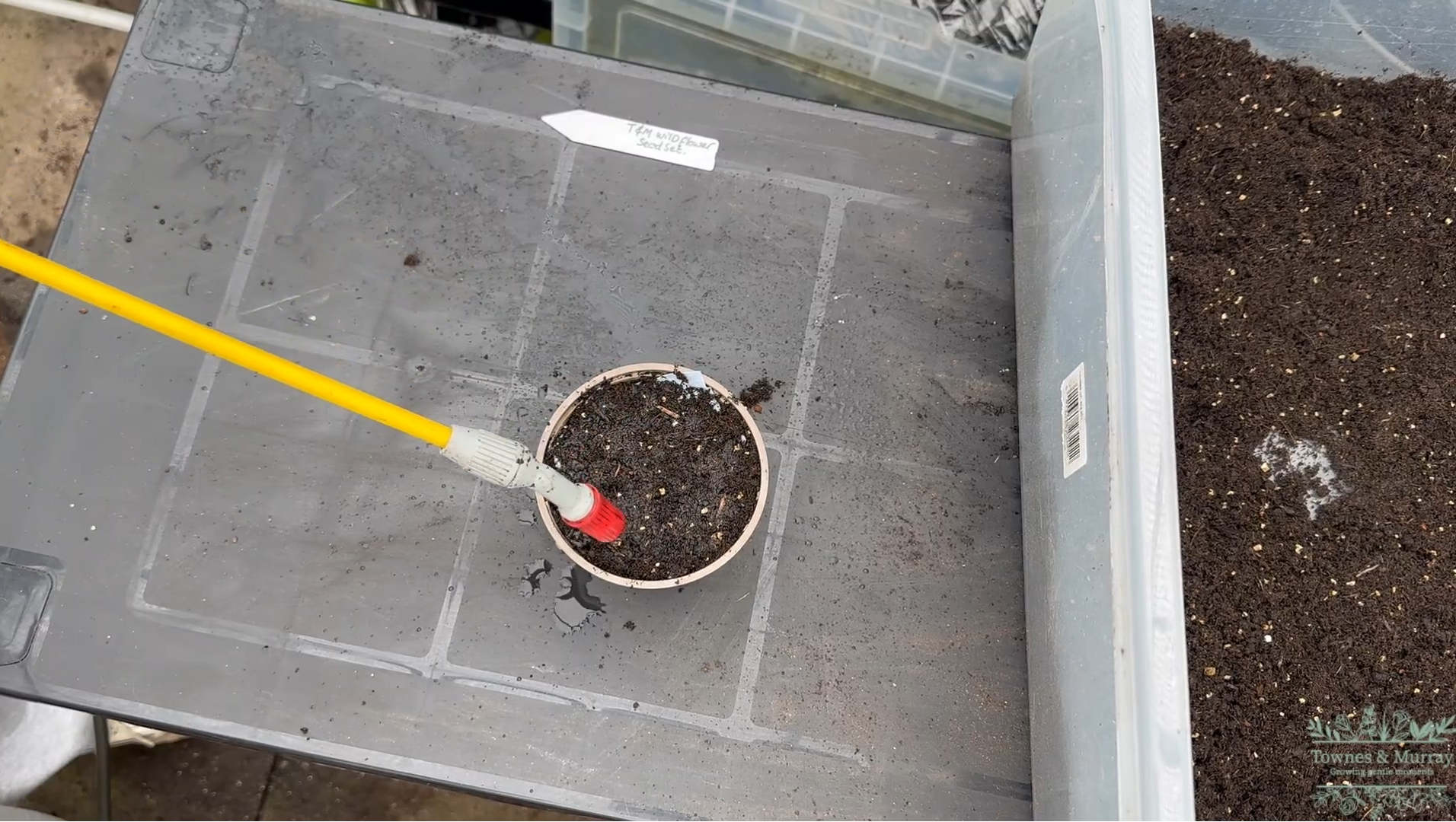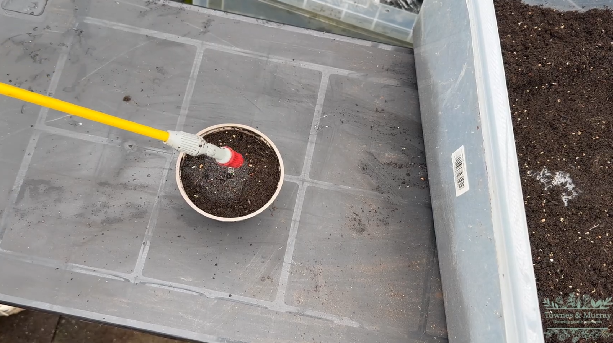 Using a fine spray or watering can, gently water the soil until it is moist but not soaked. Think of this